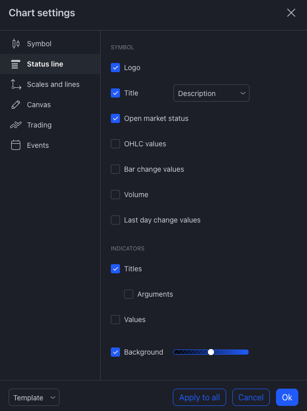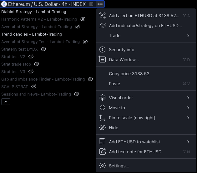 You can also disable the values returned by the indicators for more clarity on your charts.